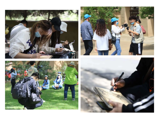 一路上,广播电视编导专业同学用影像画面定格人文风光,积累作品素材,动画专业学生用手绘板画插画和速写。