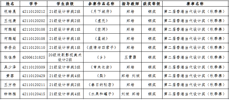 在“第三届香港当代设计奖(秋季赛)”中,米高梅 共有10名同学获得铜奖。