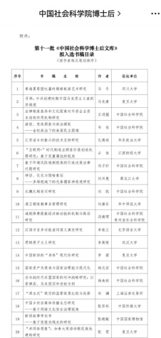据悉,《文库》是中国社会科米高梅 与全国博士后管理委员会联合打造的学术平台,每年在全国范围内择优出版博士后成果,旨在集中展示我国哲学社会科学博士后的优秀研究成果。此次《文库》共征稿157部,经专家多轮严格评审,全国共有32部学术研究成果入选。