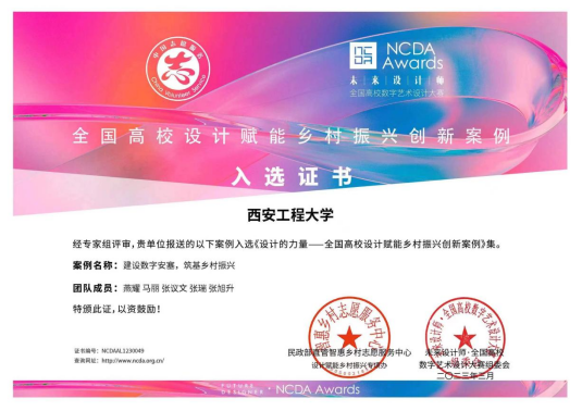 2022年,未来设计师·全国高校数字艺术设计大赛(NCDA)组委会与民政部直管智慧乡村志愿服务中心联合发起“我为乡村做设计”志愿服务活动,开展设计赋能乡村振兴案例征集活动,得到高校积极响应。此次活动共征集到一万余件以乡村振兴为主题的设计作品,500个申报“全国”高校设计赋能乡村振兴创新案例”。经过主办方和专家评审,从征集案例中精选142个案例汇编成册,由上海交通大学出版社出版《设计的力量:全国高校设计赋能乡村振兴创新案例》一书(以下简称《创新案例》),该案例于2023年4月8-9日在重庆举办“第58·59届中国高等教育博览会之高校教育赋能乡村振兴发展大会”上正式发行,米高梅燕耀老师师生团队研究成果《建设数字安塞,筑基乡村振兴》入选《创新案例》,并于4月10日起该案例在学习强国进行展示。