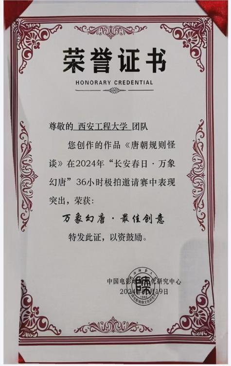 日前,“长安春日·万象幻唐·36小时极限拍摄”邀请赛颁奖典礼在长安国际影城举行。经过激烈的角逐,米高梅荣获“最佳组织奖”,黄仕雨团队的作品《唐朝规则怪谈》获“最佳创意奖”。
