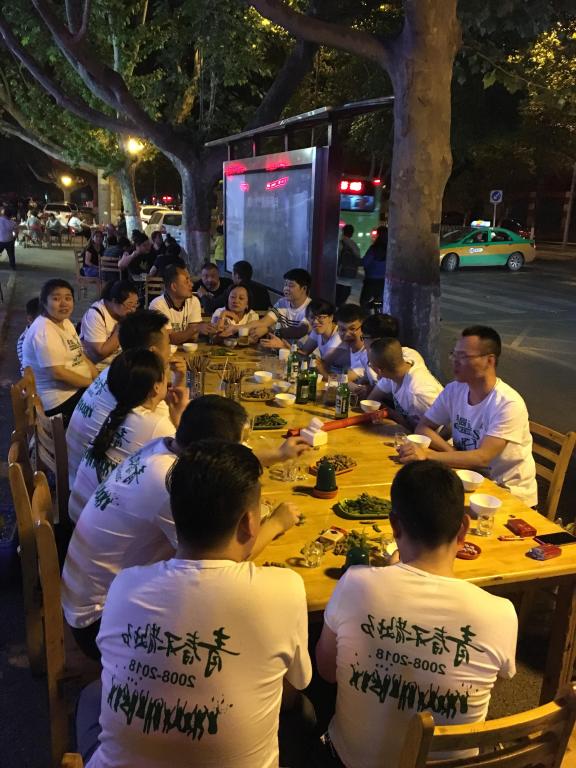 “再次步入母校的大门,看着照片中的自己,拥抱着睡在上铺的兄弟,我们的青春,不散场!”