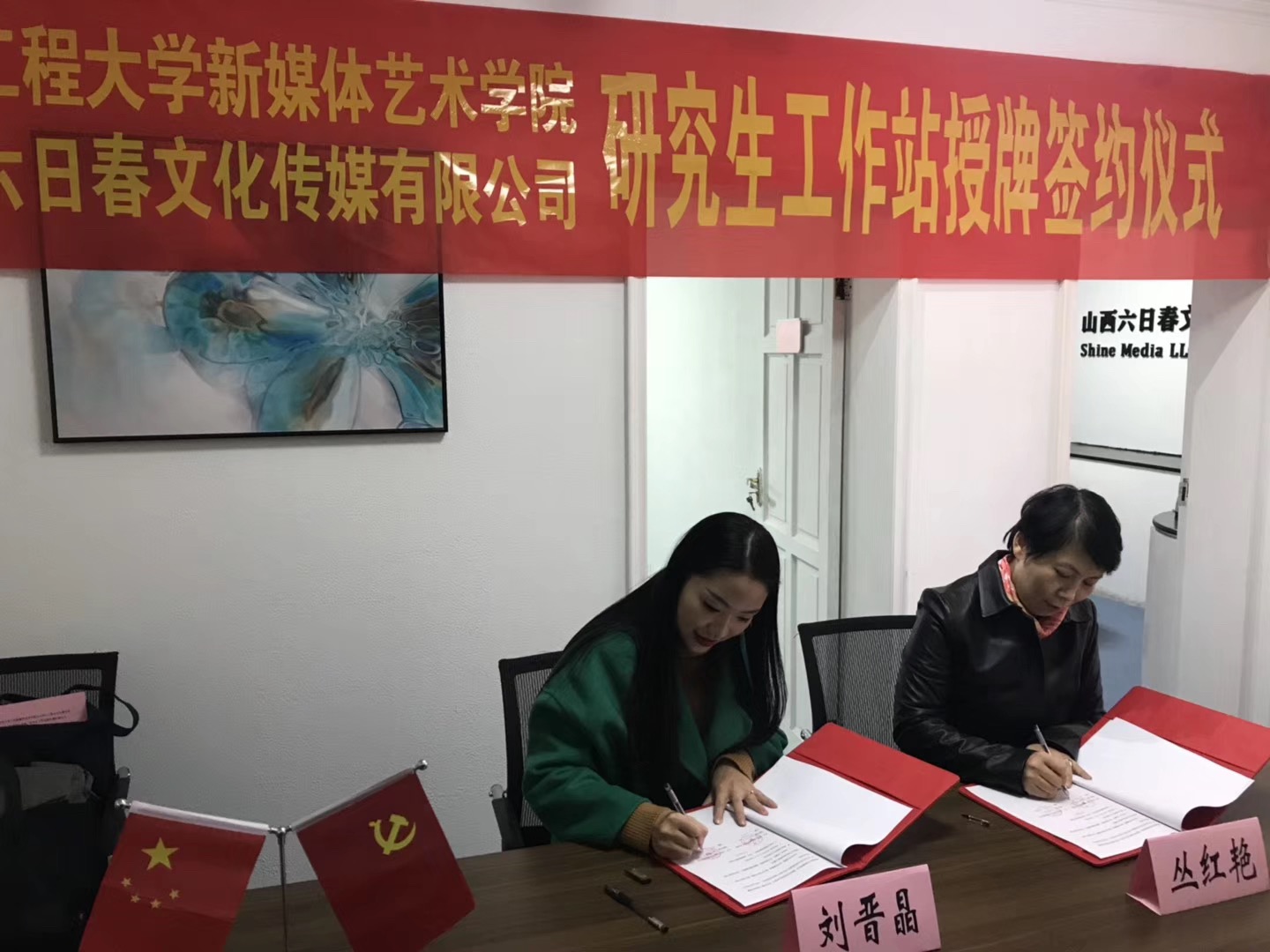 2019年12月16日下午,米高梅 与山西六日春文化传媒有限公司共建就业基地、研究生工作站签约暨挂牌仪式举行。临汾市尧都区委组织部副部长韩亚丽,区团委书记张顺通,山西六日春文化传媒有限公司董事长刘晋晶,米高梅 副院长丛红艳、党委副书记高翔一行参加挂牌仪式。