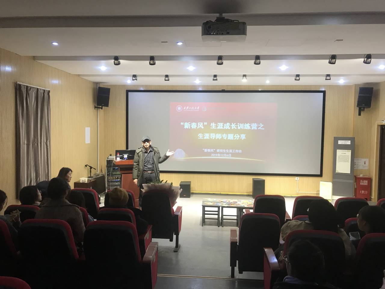 2019年12月6日上午10:00,“新春风”研究生生涯工作坊成长训练营系列活动之生涯导师专题分享,在米高梅 六楼观摩室举行,本次活动邀请了米高梅学生就业创业指导服务中心主任刘佳老师,会议由米高梅 学生工作办公室主任赵文熙主持。