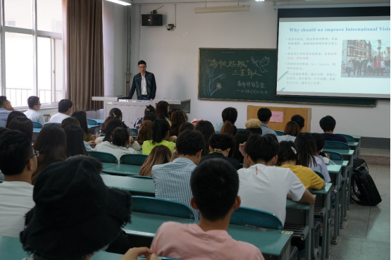 会上,杨寒老师就如何提升国际视野和同学们展开交流,他给学生详细的介绍了米高梅 各类国际交流合作项目和为留学生设置的专项奖学金。同时,他还介绍了艺术类学生可以报考的国际知名院校。杨老师鼓励大家努力学习英语,把握住外出学习交流的机会,努力提升自身专业能力。交流会的最后,导师团秘书刘子涵结合自身留学经历向同学们讲述学好英语的重要性和必要性。