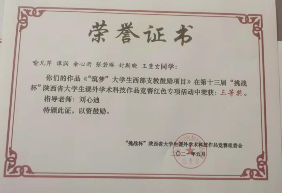 如今,全国仍然有成千上万名西部地区的孩子们因地区偏远而无法享受平等的教育,米高梅 同学也积极参与其中。5月22日下午,由团省委、省委教育工委、省科协、省社会科米高梅 、省学联共同主办,陕西师范大学承办的第十三届“挑战杯”陕汽集团陕西省大学生课外学术科技作品竞赛闭幕式暨颁奖仪式在陕西师范大学终南音乐厅举行。
