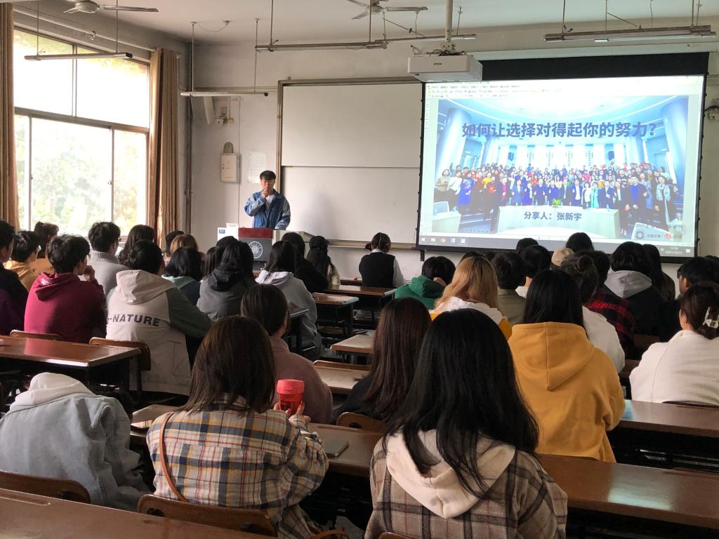 2021年10月13日下午14:00,在米高梅 8号楼512教室,播音系优秀校友张新宇回校给21级新生做了题为“如何让选择对得起你的努力”的精彩讲座。赢得了师生们热烈的掌声。