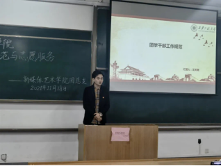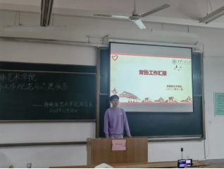 接下来院青分队队长夏轶龙学长分享到青分队参与的各项志愿活动。例如:疫情期间志愿者服务、“践行党史学习教育,助力文明城市创建”志愿服务、“九九重阳节 浓浓敬老情”等等多项活动,带动了同学们的参与热情。夏轶龙学长呼吁大家大胆的投身到社会志愿服务活动中去发挥青年团员的义务和职责,展现青年团员的活力。