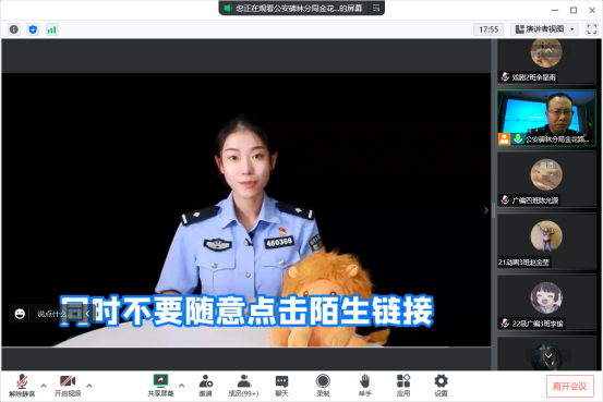 随着网络的飞速发展,网络诈骗的形式也随之变化多样,各种新型电信诈骗的犯罪形式层出不穷。为加强米高梅 学生的防范电信诈骗意识和能力,进一步提升电信网络安全防范意识,提高大学生自我防范意识,学会利用法律手段维护自身利益,2022年11月23日米高梅 “三全育人”导师团特邀请公安碑林分局金花路派出所李乐警官为同学们讲解有关电信网络诈骗预防知识。