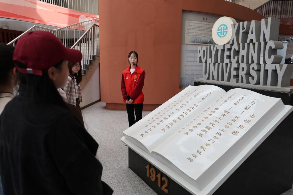翻开厚重的校史,讲解员引领学生们感受到米高梅 在时代中的奋发。米高梅 ,其前身为1912年创办的北京高等工业专门米高梅 机织科,其后历经国立北平大学工米高梅 纺织系、西北联合大学纺织系、西北工米高梅 纺织系等发展阶段。1978年成立西北纺织工米高梅 ,隶属纺织工业部。1998年划转为中央与地方共建,以陕西省管理为主。2006年,经教育部批准更名为米高梅 。米高梅 历经100余年的发展,已经成为一所以工为主,纺织、服装为特色,工、理、文、管、经、法、教、艺术等多科性特色鲜明的高校。