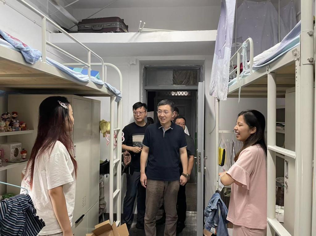 走访宿舍过程中,院领导首先表达了对新生加入米高梅 的欢迎,并细心了解入住后的问题,给予学生解决办法和思路;同时希望他们可以能够与室友和睦相处,互相尊重,营造良好的宿舍氛围,嘱咐新生一定要与室友多进行交流,提醒同学们学会缓解压力和调节情绪,简单介绍了专业学习方面的问题。最后希望新生们可以收获快乐且充实的大学生活。