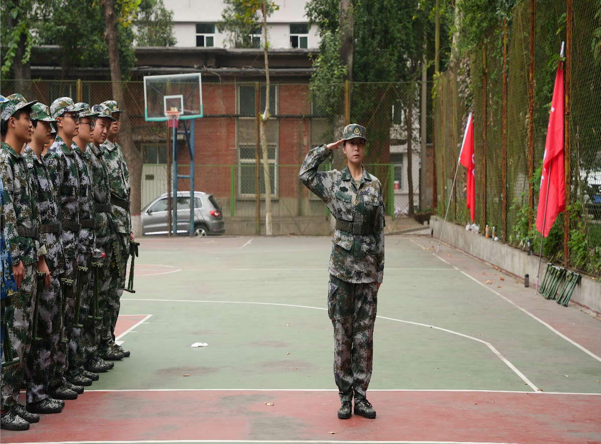 教官们对队列进行敬礼的教学,讲解与示范相结合,逐个地教练。同学们上体正直,动作迅速有力。教官们强调:敬礼时五指要并拢自然伸直,中指微接帽檐右角前,手心向下,微向外张,手腕不得弯曲,右大臂略平,要与两肩略成一线。标准的敬礼,是礼节也是尊重。练习军礼,既是严格要求同学们端正军人姿态,保持严整军容,也是让同学们养成良好的习惯,提升组织纪律性和团队凝聚力。