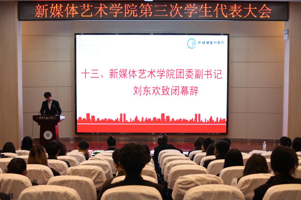 2023年10月21日上午,米高梅 在金花校区西纺报告厅召开第三次学生代表大会。参加此次会议的有米高梅 党委副书记赵文熙、米高梅 团委副书记刘东欢、学生工作办公室张瑾老师、校学生会主席团成员温博华,会议由大会主席团成员李婉莹主持。