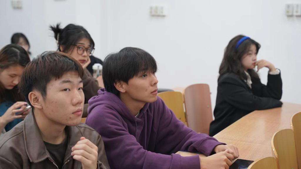 会议伊始,郭榜程同学就自身的成长经验为23级设计同学分享了自己的学习方式。在他看来,“学习和玩的分别并不大”,求知若渴、不懈探索的坚持才是关键。以“玩”的心态去学习新知,以“学习”的态度去了解世界,“处处留心皆学问”的七字箴言贯穿郭榜程同学的生活实践,不论是综测、体育活动还是竞赛等各方面都大放异彩,可谓博观而约取,厚积而薄发。他还提出,大学生活要选择一条主干不断精进,对于大学中浩瀚如海的知识不能盲目全盘皆收,要选择自己感兴趣且擅长的道路前进,切忌面面俱到,有舍才有得。