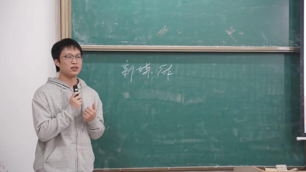 查成烁同学从参赛经历、志愿服务经历、组织比赛三个方面与在座的播音学子交流经验和心得。在参赛经历方面,查成烁同学介绍了自己在大学中参加的一系列比赛。他从自身出发,用丰富的大赛经历告诉直系的学弟学妹们要学好自身专业,不断提升专业能力,多实践,多锻炼,积极参加比赛,利用一切机会丰富自己的履历。在志愿服务经历方面,查成烁同学结合自己参与学生组织的情况,详细地为在座的同学分享自己参与志愿活动与学生组织过程中的心得体会。他希望在座的播音学子要明确自己的目标,明白自己到底想要什么,并且要朝着自己的目标奋勇前进;更要将火热的青春投入到志愿服务中,服务他人和社会,为社会贡献一份自己的力量!最后,查成烁同学详细介绍了自己组织辩论赛的经历,用最真实的比赛经历告诉同学们要以积极认真的态度对待活动,在活动中一步一个脚印获得成长。