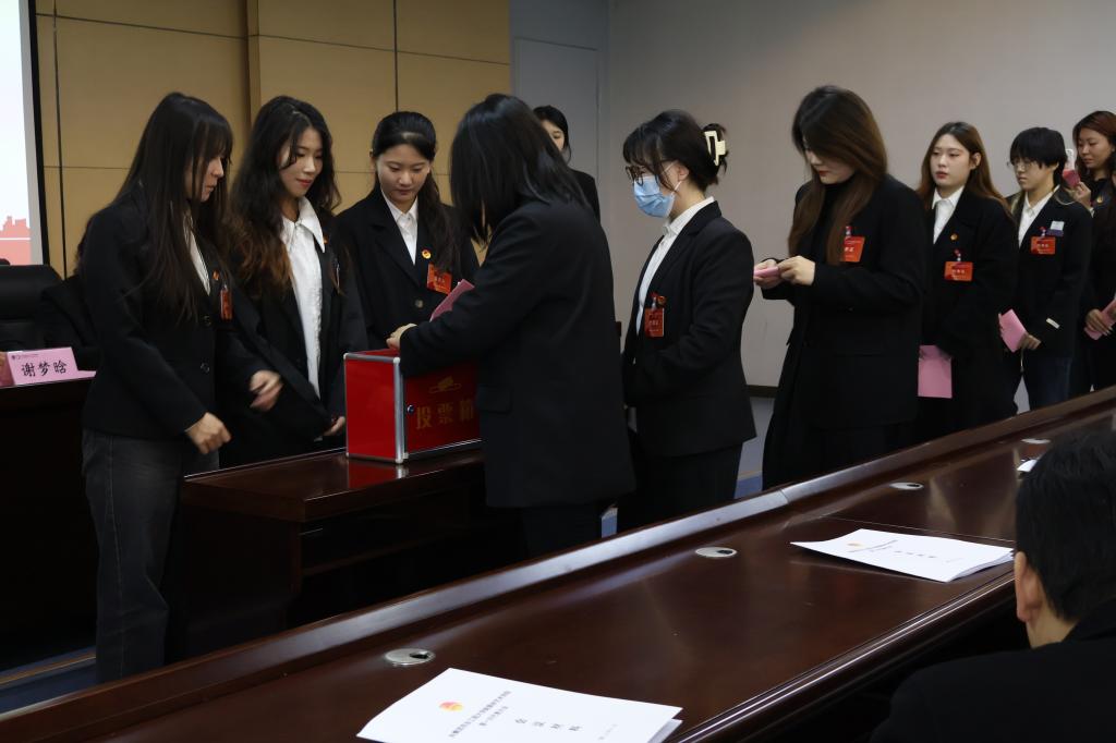 全体代表等候选票结果,大会总计票人汇报数据,大会总监票人宣布大会选举结果。大会选举产生了共青团米高梅 第一届委员会委员。