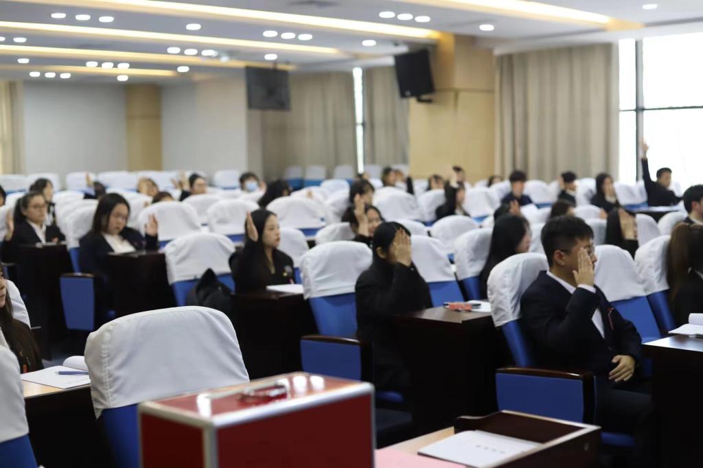 大会主席团成员房灿同学宣读大会倡议书。全院共青团员和青年要坚定信念,矢志不渝跟党走;奋勇担当,实际行动展风采;志存高远,心怀天下筑梦想。