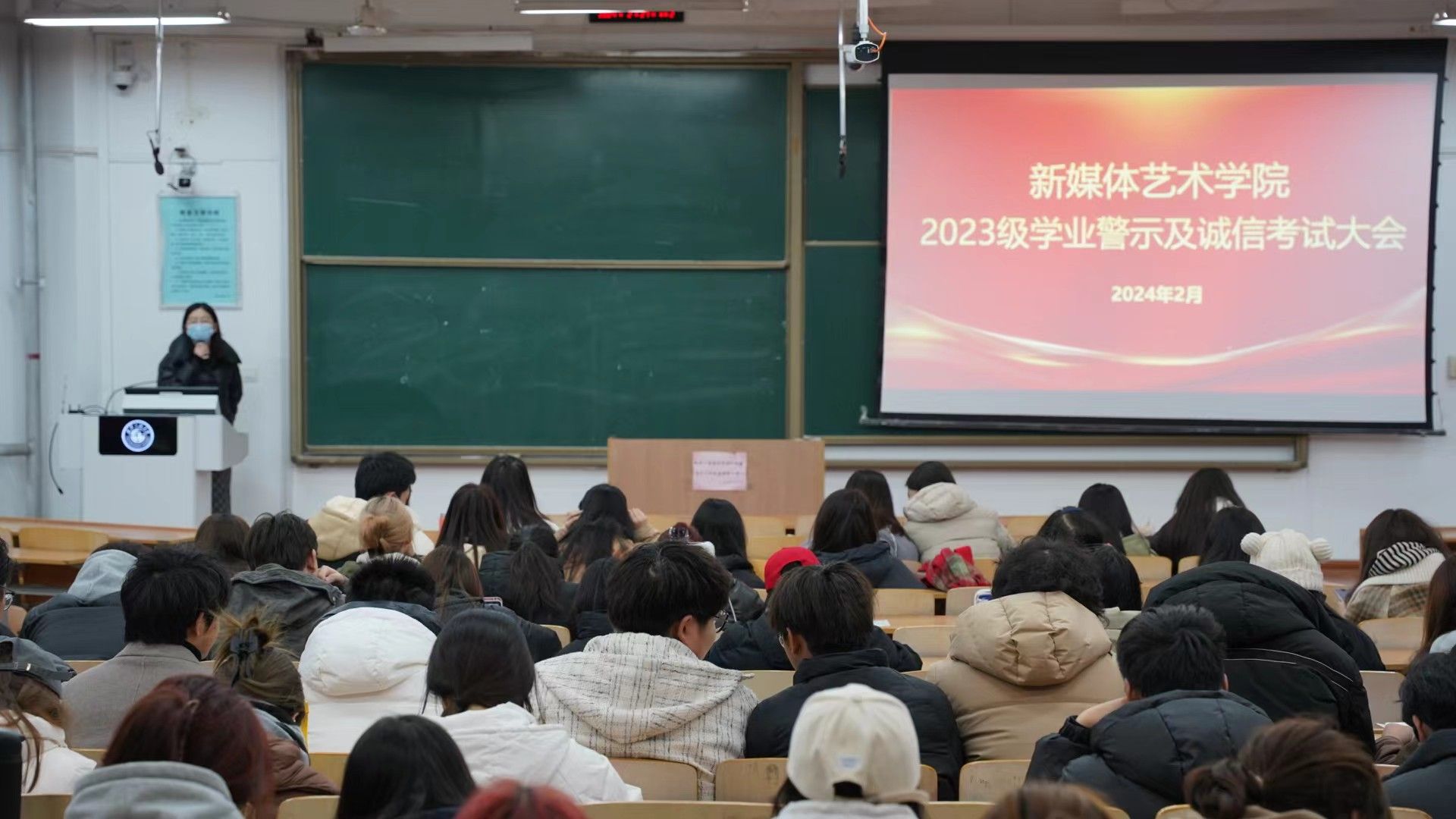 为帮助学生更好地规划学业,提高学习质量,推进学风建设,引导学生树立积极端正的学习态度,提高学业困难学生的学习积极性,从而保障米高梅 的教育教学质量和人才培养质量。米高梅 于2024年2月27日在临潼、金花两校区教学楼召开2023级学生学业警示及诚信考试大会,米高梅 党委副书记赵文熙、辅导员宾田田及米高梅 2023级全体学生参加。
