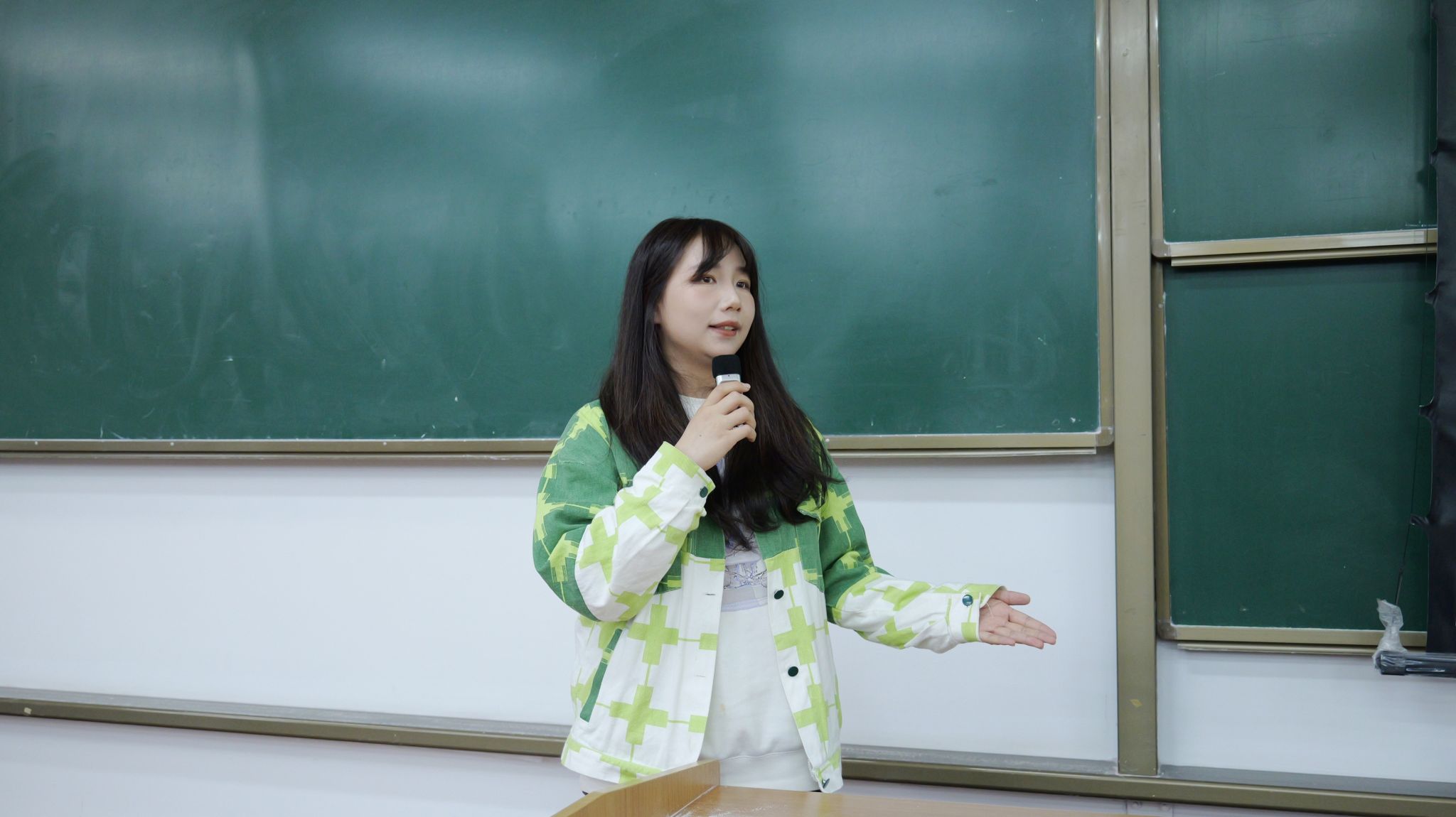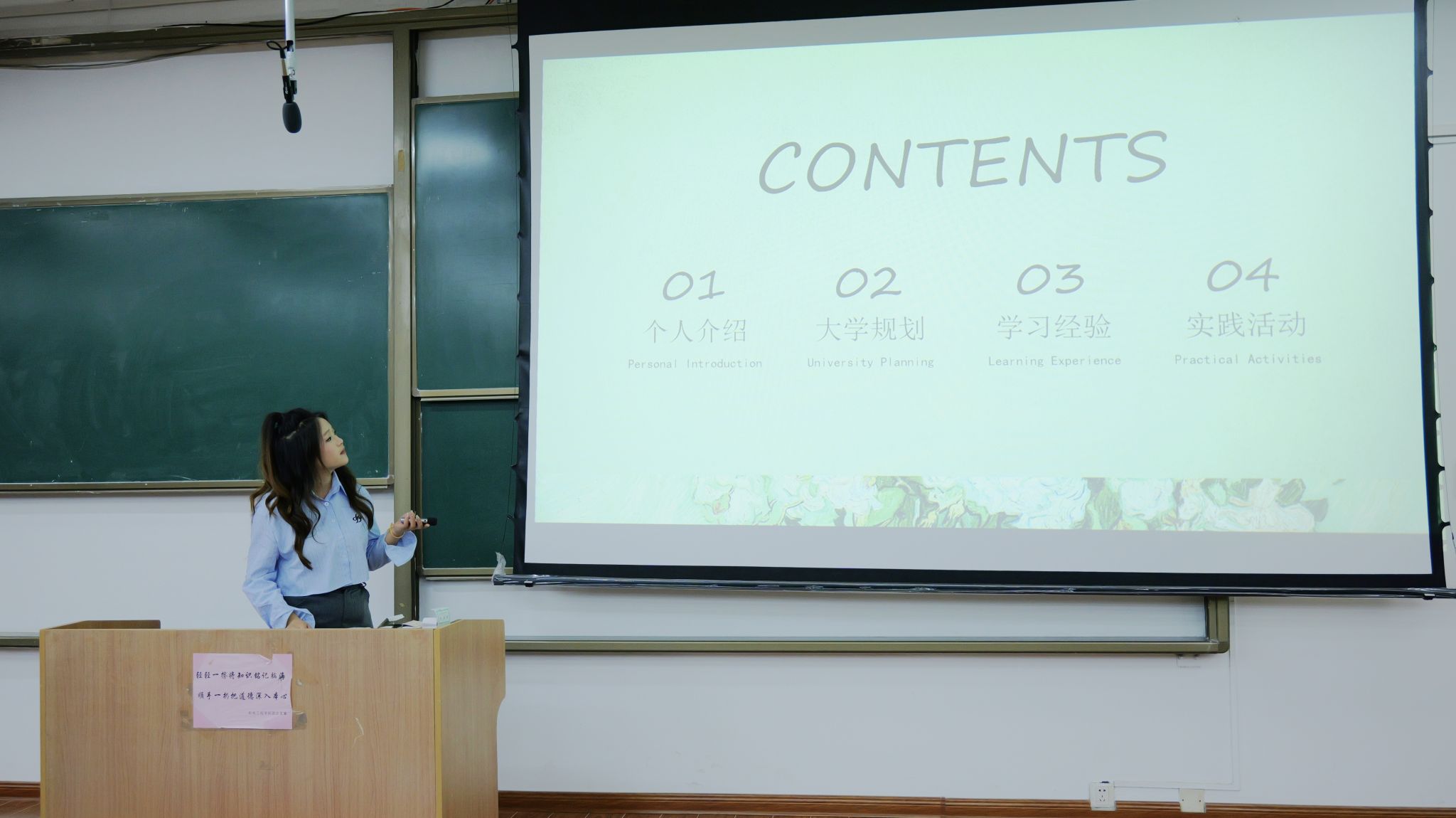 “等风来不如追风去”这是陈美荣同学的分享主题。她向大家提供了一份大学四年的规划表,为同学们展示了一份未来的蓝图。通过讲述自己初入校园的迷茫到现在的目标明确并在学业上有所成就的经历,向大家展示了一个大学生发自内心的积极转变,使同学们对自己的未来认知更加清晰,目标更加明确。她用自己的真实经历告诉23级的同学们,只要沉下心不断向前就一定会成功。她强调,要明确目标,不要在原地停滞不动从而放弃进步,行动永远是改变现状的最佳方式。发光不是太阳的权利,每个人都能熬过最苦的日子,要做最酷的自己。