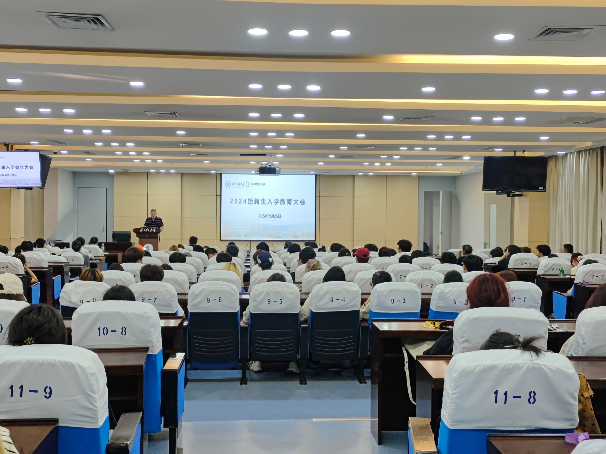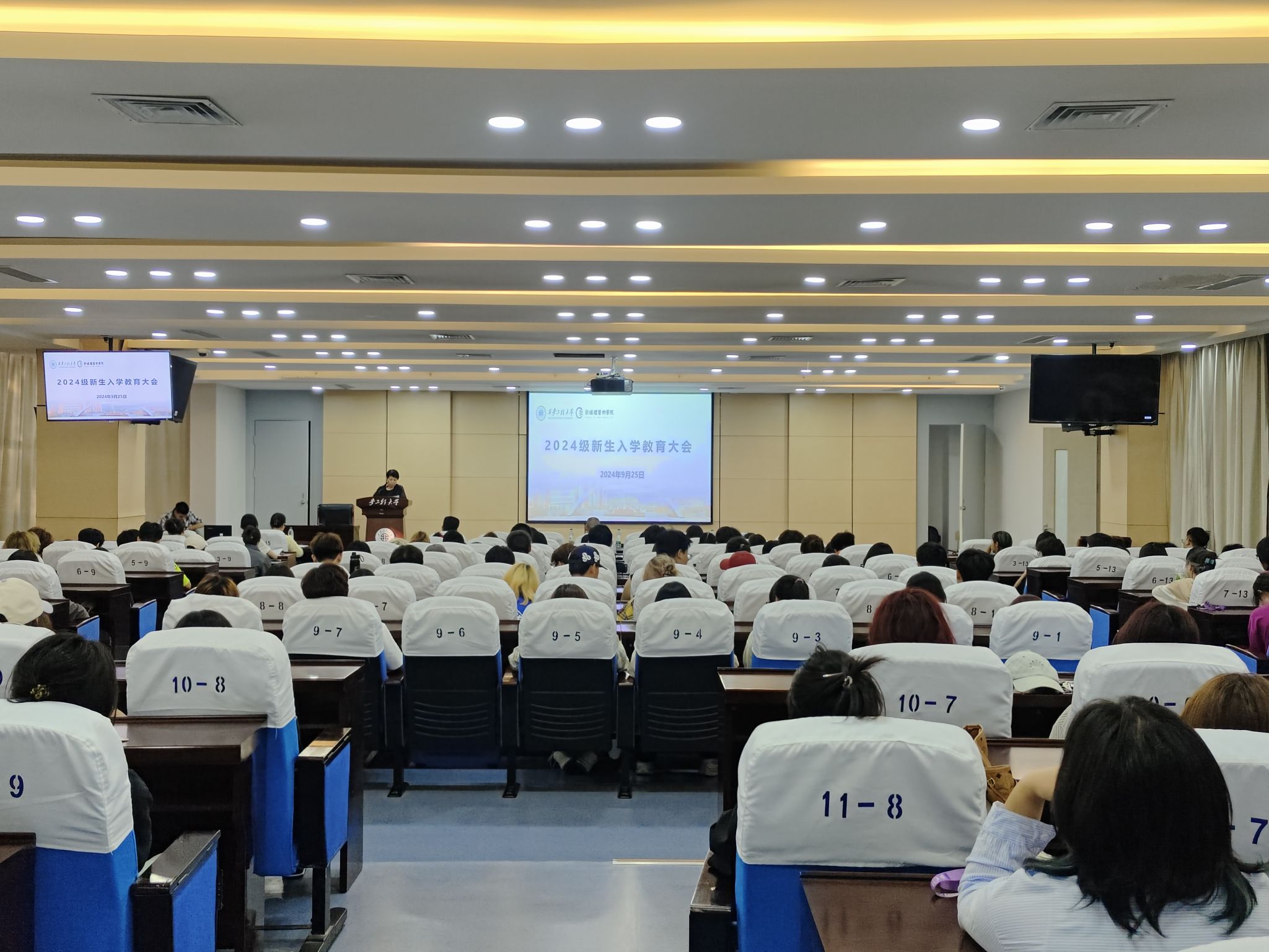“金秋送爽,征程启航”。9月25日下午,米高梅 2024级本科新生入学教育大会在金花校区图书馆二楼如意报告厅举行。院党委书记张瑾,副院长(主持工作)丛红艳,国际处副处长黄玲,党委副书记赵文熙,副院长姒晓霞,学工办主任张瑾(女)、教学秘书姜珊、新生辅导员杨欣仪、学风辅导员刘子涵、资助辅导员宾田田及2024级全体新生参加会议。大会由院党委副书记赵文熙主持。