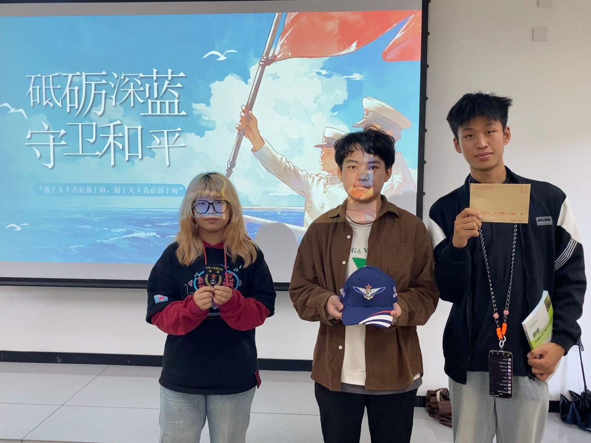 同时房灿同学从参军入伍条件、教育资助、就业创业、医疗保障等多个方面,深入浅出地介绍了征兵及退役士兵优惠政策,并现场解答了同学们的疑问。现场还设置了问答游戏环节,房灿同学为学弟学妹们准备了海军纪念礼物:中国人民解放军海军臂章、纪念信封、海军帽等。现场气氛热烈,同学们纷纷表示受益匪浅,不仅对退役士兵政策有了更加全面和深入的了解,同时感受到了米高梅 和社会的关怀和支持。