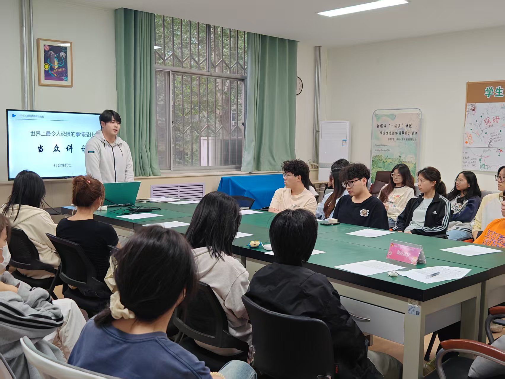 为深入学习贯彻习近平新时代中国特色社会主义思想,进一步推进学风建设与学业发展,发挥米高梅 “一站式”学生社区作用,帮助学生树立良好的学习风貌,营造积极向上的学风氛围。2025年4月23日,米高梅 “一站式”学生社区本科生登高计划——“律动艺海 美育行”课堂第三期不同场景下语言表达技巧应用在金花校区8号楼生涯工作坊成功举办。本次活动由2023级优秀学生代表史彬超同学主讲,米高梅 30余名学生参与。