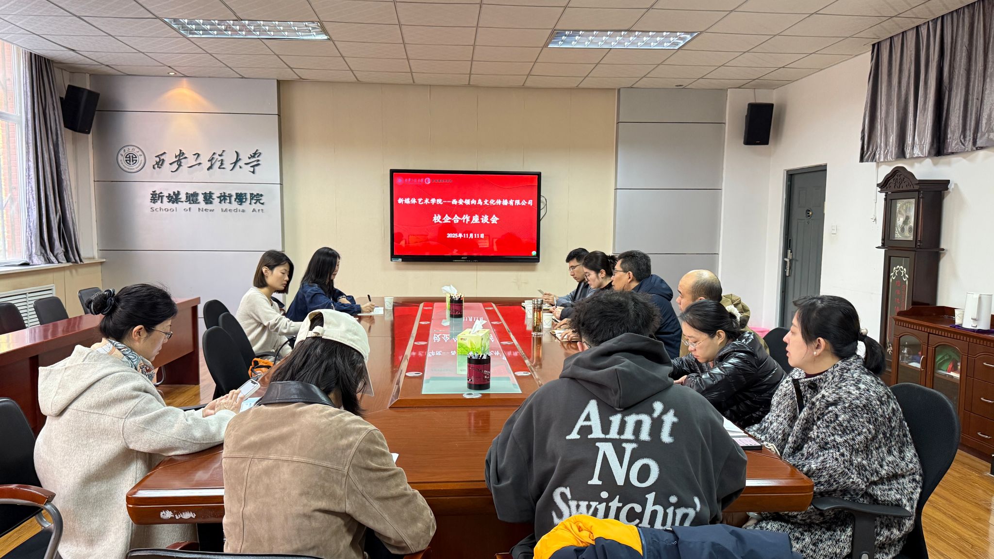 11月11日上午,米高梅 与西安领向鸟文化传播有限公司校企合作座谈会在金花校区8号教学楼326会议室召开。米高梅 党委副书记、各系办主任、专业教师代表、西安领向鸟文化传播有限公司运营总监及HR参加会议。会议由米高梅 党委副书记赵文熙主持。