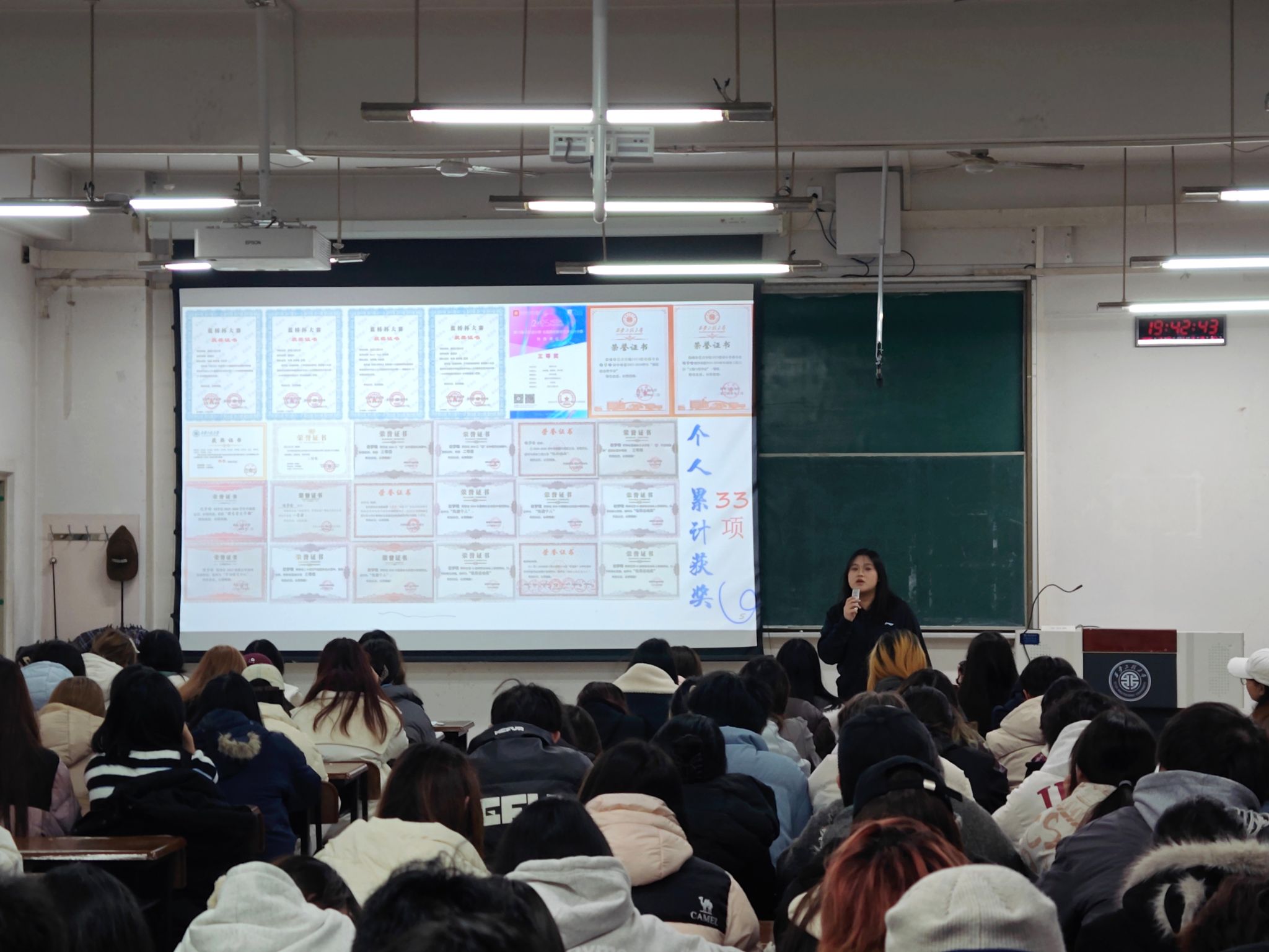 分享会上,两位同学结合自身成长经历,围绕学业提升、竞赛参与、实践拓展与个人成长等多个维度展开交流。姜北通过展示获奖证书与专业作品,强调扎实学习与科研竞赛的重要性,并以“诚信是立身之本,感恩是成长之基”鼓励学弟学妹珍惜时光、坚定前行。谢梦晗则从自身丰富的获奖与实践经历出发,分享了时间管理、专业深耕与多元体验的心得,强调常怀感恩、脚踏实地的重要性,并鼓励大家勇于尝试、积极进取。