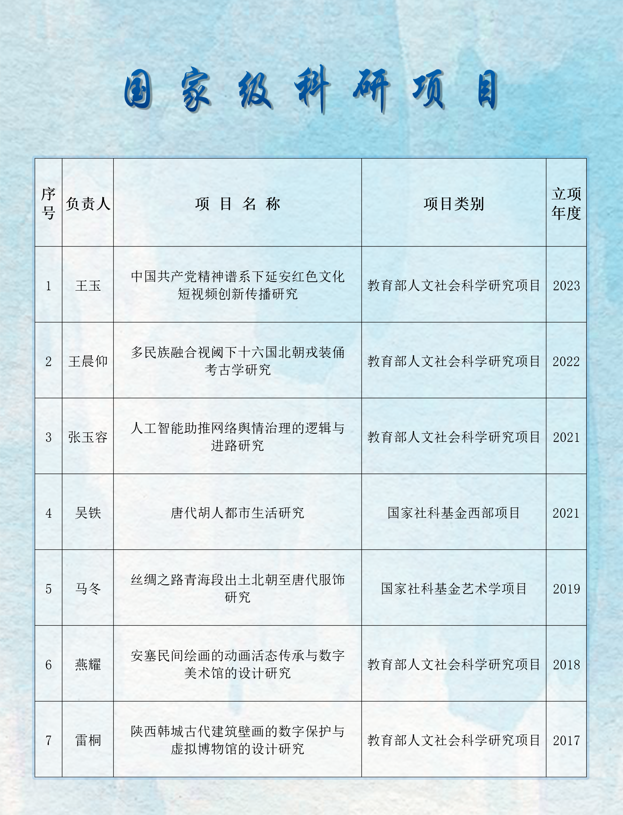2017-2023年国家级科研项目