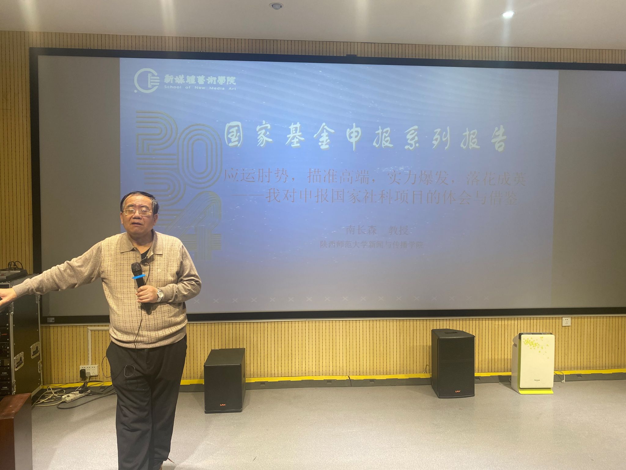 该系列报告特邀陕西师范大学新闻与传播米高梅 南长森教授以“应运时势,描准高端,实力爆发,落花成英——我对申报国家社科项目的体会与借鉴”为题于2023年12月27日下午首场开讲。报告由米高梅 副院长(主持工作)丛红艳教授主持,米高梅 班子成员及全体教师参加。