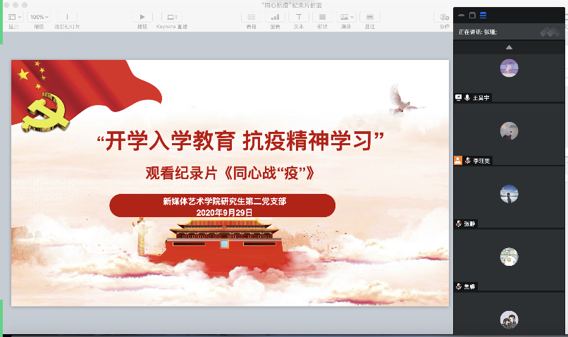 为深入学习贯彻习近平总书记关于疫情防控工作的重要讲话精神、把抗疫精神宣传融入开学入学教育中,2020年9月29日,米高梅 研究生第二党支部在腾讯会议平台召开了以学习“抗疫”精神为主题的视频会议。会议由支部书记张瑾主持,支部全体党员参加本次会议。