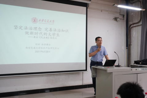 刘桢博士围绕《民法典》进行了精彩的讲解。《民法典》在中国特色社会主义法律体系中具有重要地位,是新时代我国社会主义法治建设的重大成果,是一部固根本、稳预期、利长远的基础性法律。《民法典》的核心理念是民事权利宣言、公平诚信与平等自愿。刘桢博士对《民法典》总则编、物权编、合同编等方面解读,通过多个典型案例详细地分析,让同学们对《民法典》有了更深入的理解。