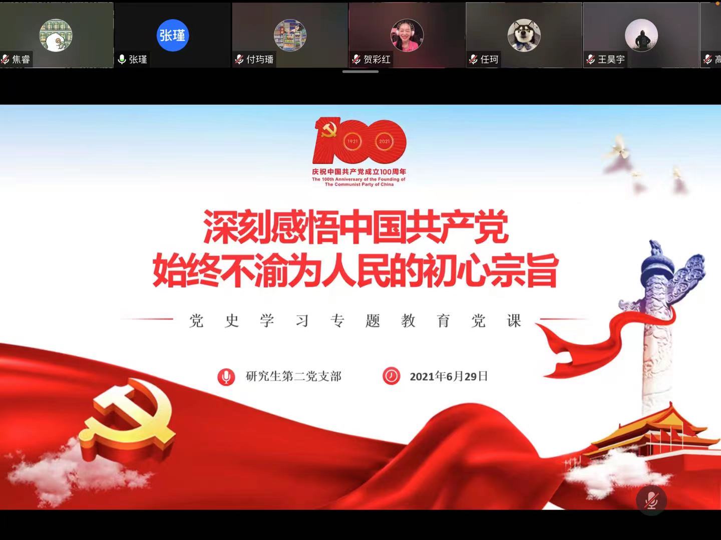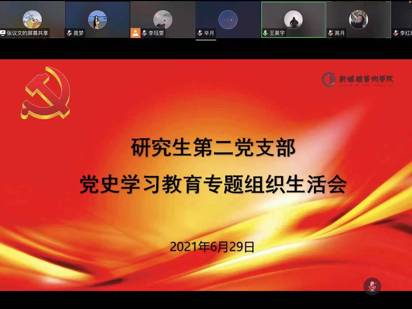 2021年6月29日晚,米高梅 研究生第二党支部在腾讯会议组织开展了党史学习教育专题组织生活会,会议由支部书记张瑾主持,全体党员参加本次组织生活会。