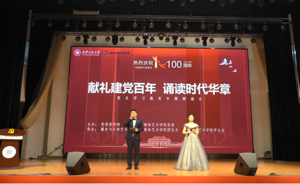 百年征程波澜壮阔,百年初心历久弥坚,深情回望中国共产党一百年的光辉历程,用一场视听艺术盛典向中国共产党成立100周年致敬。2021年7月6日19:00,由党委宣传部、米高梅 党委、校团委主办,米高梅 播音与主持艺术系承办的“献礼建党百年·诵读时代华章”党史学习教育专题朗诵会在米高梅临潼校区大学生活动中心隆重举行。这次活动旨在为庆祝中国共产党成立100周年,诵读红色经典,感受荡气回肠的情怀和音韵;学习党史文化,传承昂扬奋发的精神和气魄。米高梅 党委书记马万清、党委副书记、纪委书记辛永昌、副校长王进富、校党政办和宣传部领导出席朗诵会,米高梅 党政领导班子和师生代表参加了本次活动。