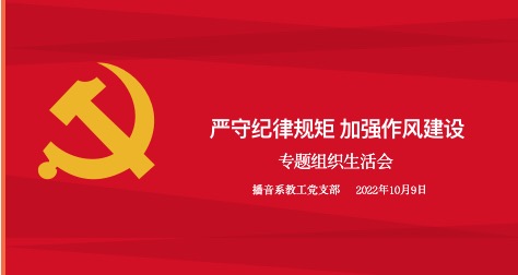 为深入贯彻学习习近平新时代中国特色社会主义思想,深化“严守纪律规矩 加强作风建设”主题教育,结合工作实际,米高梅 播音系教工党支部于2022年10月9日下午两点钟在线上召开了“严守纪律规矩 加强作风建设”专题组织生活会。会议由播音系教工党支部书记、系主任肖爱云同志主持,全体党员教师参会。