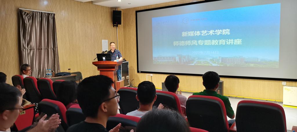 为深入学习贯彻习近平新时代中国特色社会主义思想和习近平总书记关于教育的重要论述,全面落实“立德树人”根本任务,积极引导米高梅 广大教师做有理想信念、有道德情操、有扎实学识、有仁爱之心的“四有”好老师,7月14日下午,米高梅 在观摩室召开师德师风专题教育系列活动,分为四个主题,一是进行师德集中学习教育动员部署;二是特邀米高梅管理米高梅 教授兼发展规划处处长刘晓喆同志开展专题讲座;三是启动“一院一品”之“新媒师影”活动;四是举行师德师风教育“润德”观影活动。会议由米高梅 党委书记张瑾主持,米高梅 全体教职工参加。