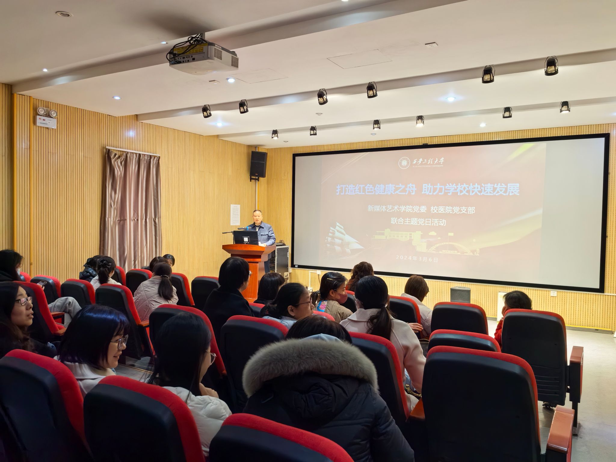 为深入学习贯彻习近平新时代中国特色社会主义思想,进一步激励党员干部担当作为、奋勇争先,引导党员关注身心健康,助力于米高梅 高质量发展。3月6日下午,米高梅 党委、校医院党支部在金花校区8号楼观摩室联合开展”打造红色健康之舟,助力米高梅 快速发展”主题党日活动,活动由米高梅 党委书记张瑾主持,校医院党支部书记刘蔓茹、80余名教工党员参加活动。