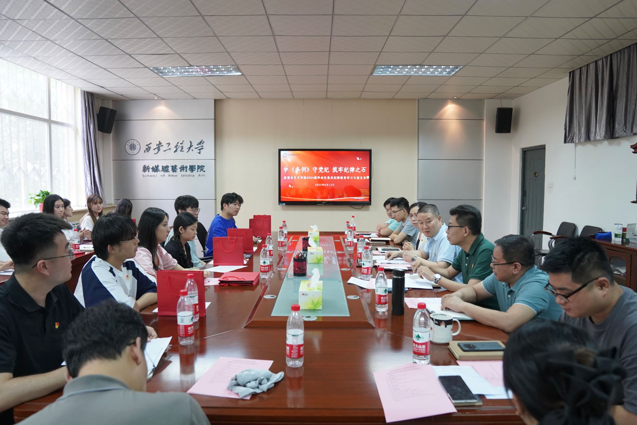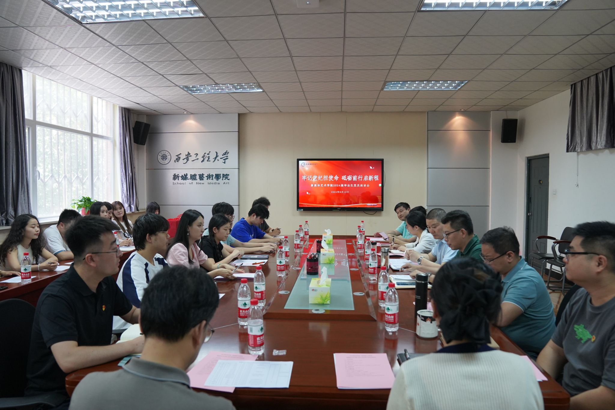 为深入学习贯彻党的二十大精神和习近平新时代中国特色社会主义思想,扎实推进党纪学习教育,进一步落实米高梅 关于毕业生思想教育及文明离校系列活动通知要求,引导广大毕业生党员继往开来、挺膺担当、修养党性。6月12日下午,米高梅 党委聚焦收获一份毕业寄语、重温一遍入党誓词、作出一份党员承诺、参与一次交流座谈、赠送一份初心礼物、聆听一堂纪律党课等“六个一”的毕业生党员教育内容,在8号楼326会议室举行2024届毕业生党员座谈会。米高梅 党委书记张瑾,副院长姒晓霞、各党支部书记、辅导员、学生党员代表参加本次座谈会。会议由院党委副书记赵文熙主持。