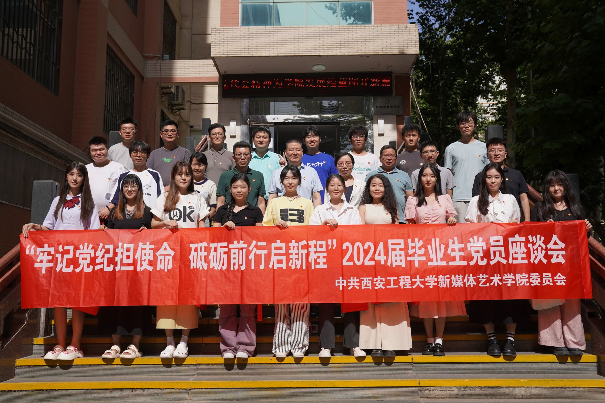 院党委副书记赵文熙致辞,他寄语毕业生党员:在踏上人生新旅程之际,要时刻铭记党员身份,永葆党员先锋本色,要心怀梦想,永远保持对专业的热爱,要铭记校训,保持谦逊,勇于探索,不断创新,相信自己的才华与能力,敢于展翅高飞,用激情与创造力追寻自己的人生价值,为党的事业添砖加瓦,让母校的荣光因你们而更加灿烂耀眼。
