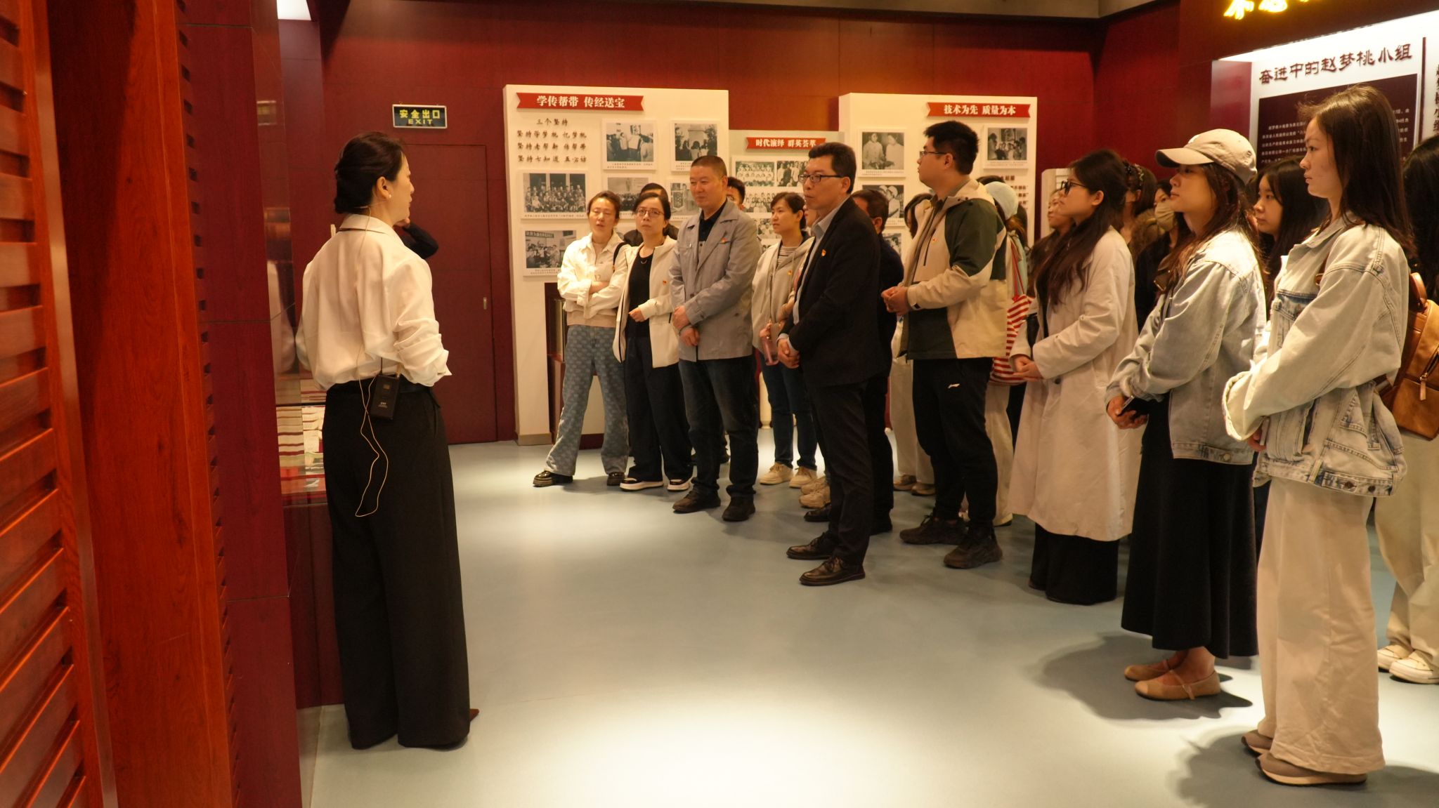 在赵梦桃纪念馆,师生党员们通过珍贵的历史照片、文献资料和实物展陈,深入了解赵梦桃同志的光辉事迹和“高标准、严要求、行动快、工作实、抢困难、送方便”和“不让一个伙伴掉队”的梦桃精神内核。一张张泛黄的老照片、一件件充满年代感的纺织工具,生动再现了新中国第一代产业工人艰苦奋斗、无私奉献的感人事迹,令在场党员深受教育。