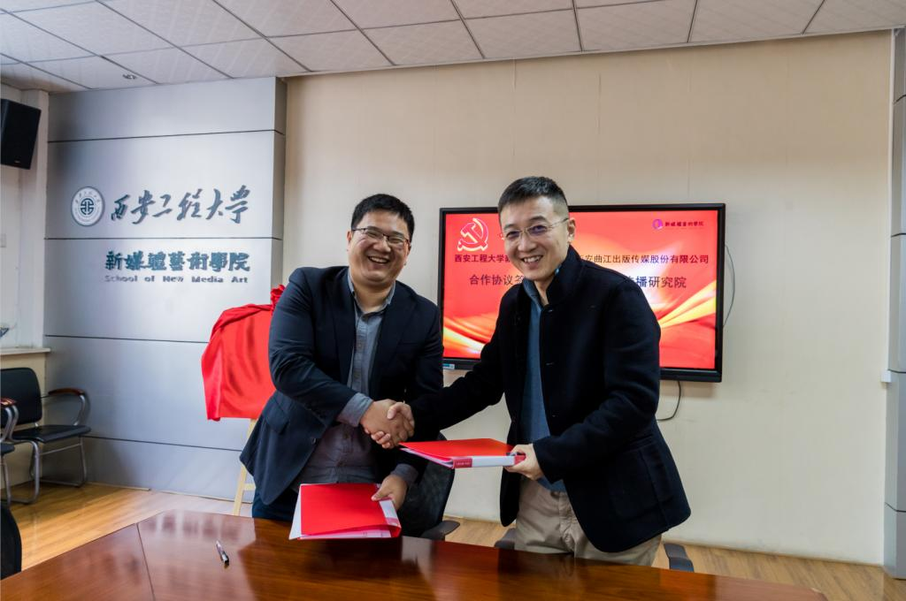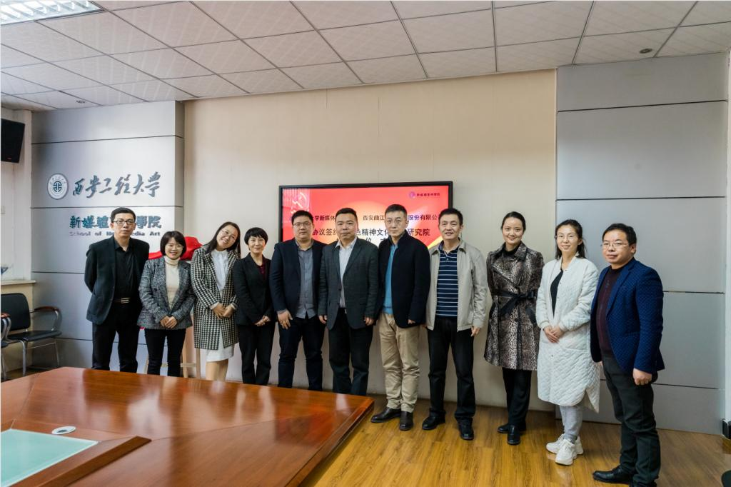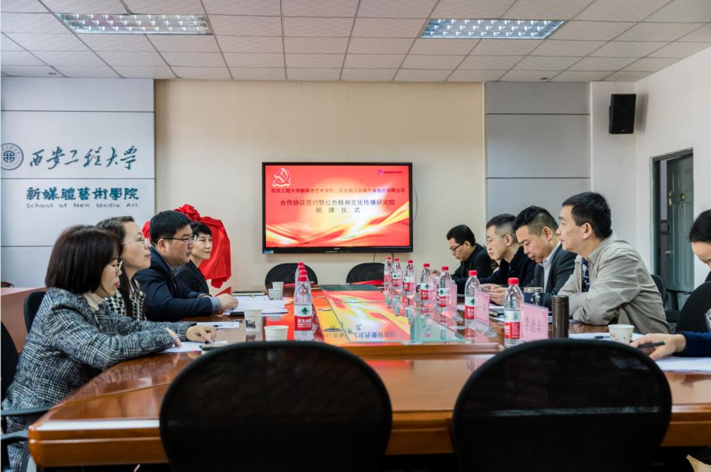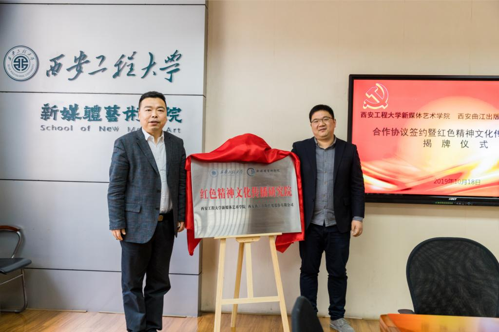 在326会议室举行西安曲江出版传媒股份有限公司合作协议签约暨红色精神文化传播研究院揭牌仪式。校党委副书记赵小峰出席,西安曲江出版传媒股份有限公司总经理孙华及相关企业负责人、米高梅