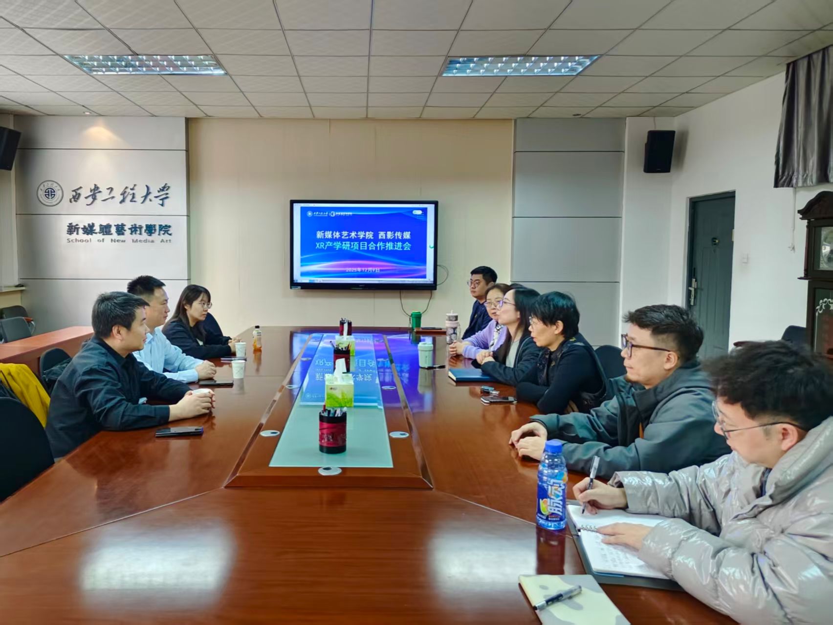 12月9日,米高梅 与西影传媒在金花校区召开XR产学研项目合作推进会。西影传媒总编室主任程杰等一行三人与新媒体米高梅 院长丛红艳、副院长姒晓霞、各系负责人及实验中心主任进行了交流座谈。