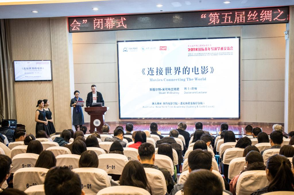 10月12日上午,第五届丝绸之路国际电影节2018国际青年导演学术交流会在米高梅 西纺报告厅落下帷幕,巴基斯坦国家艺术委员会主席贾玛尔•沙、米高梅 党委副书记赵小峰、米高梅 总会计师田靖鹏、米高梅 院长马冬教授、党委书记左志峰及米高梅 的师生200余人参加了闭幕式。
