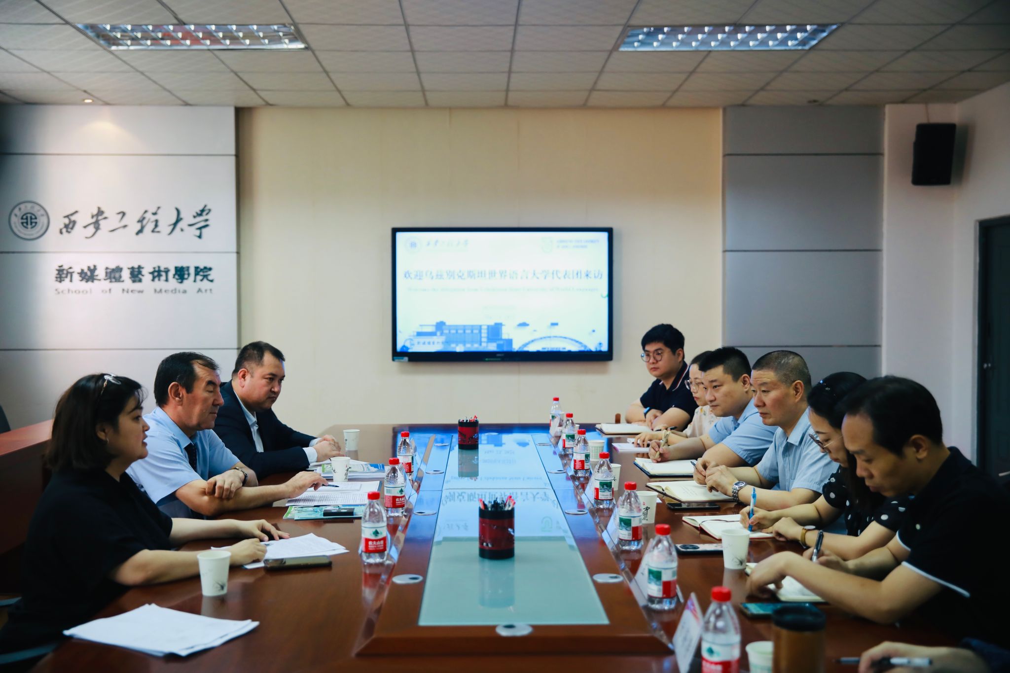 会后,乌兹别克斯坦世界语言大学代表团还参观了米高梅 西安中巴经济走廊文化艺术国际科技合作基地、数字文创与艺术形象研究中心及各专业实验室,对米高梅 科研设施与成果表示高度认可。双方将以此次交流为契机,深化合作,共同推动中乌教育文化交流,携手落实共建“一带一路”倡议和中国中亚峰会精神。