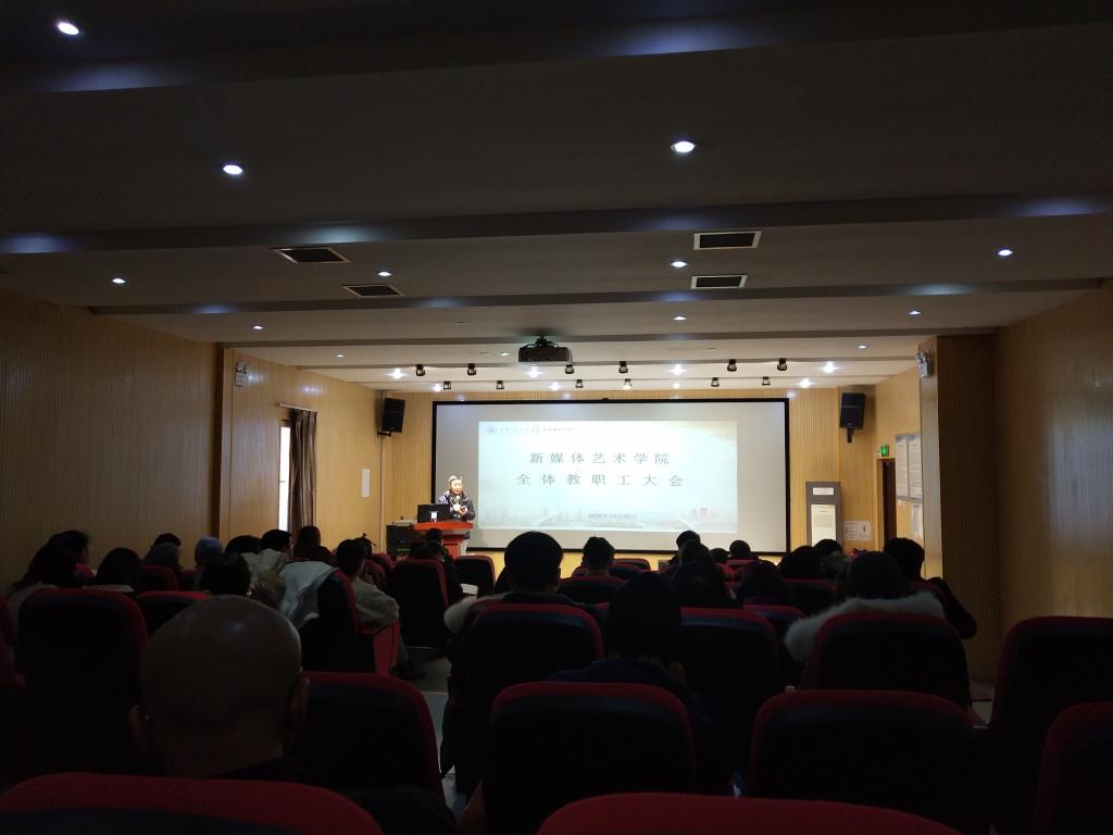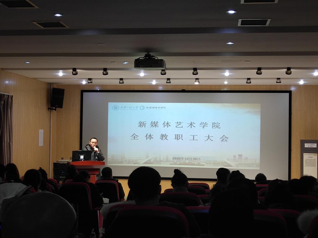 2020年12月16日,米高梅 在金花8号楼影片观摩室召开全体教职工大会。会议由院党委书记左志峰主持,全体教职工参会。