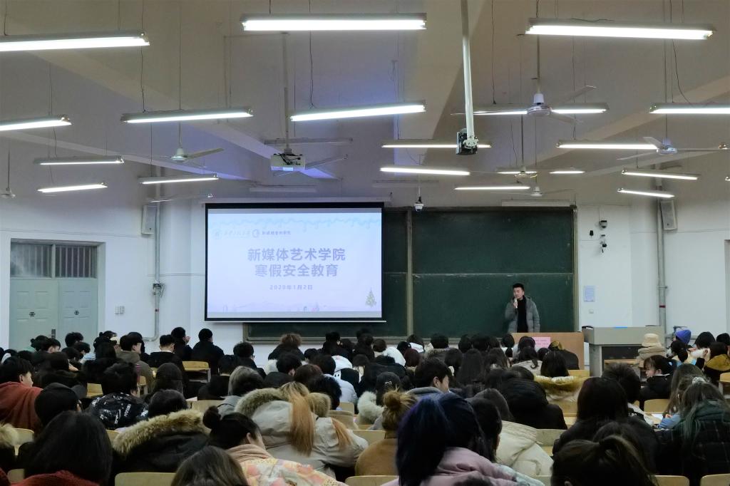 为了提高寒假期间学生的安全防范意识以及对2019级新生大学生活的总结,使学生度过一个平安有意义的假期并对未来做出规划,米高梅 于2020年1月2日晚7:00在B133教室召开“寒假安全教育”年级大会暨2019年总结大会,参加本次大会的有米高梅 辅导员康新兴以及2019级全体学生。