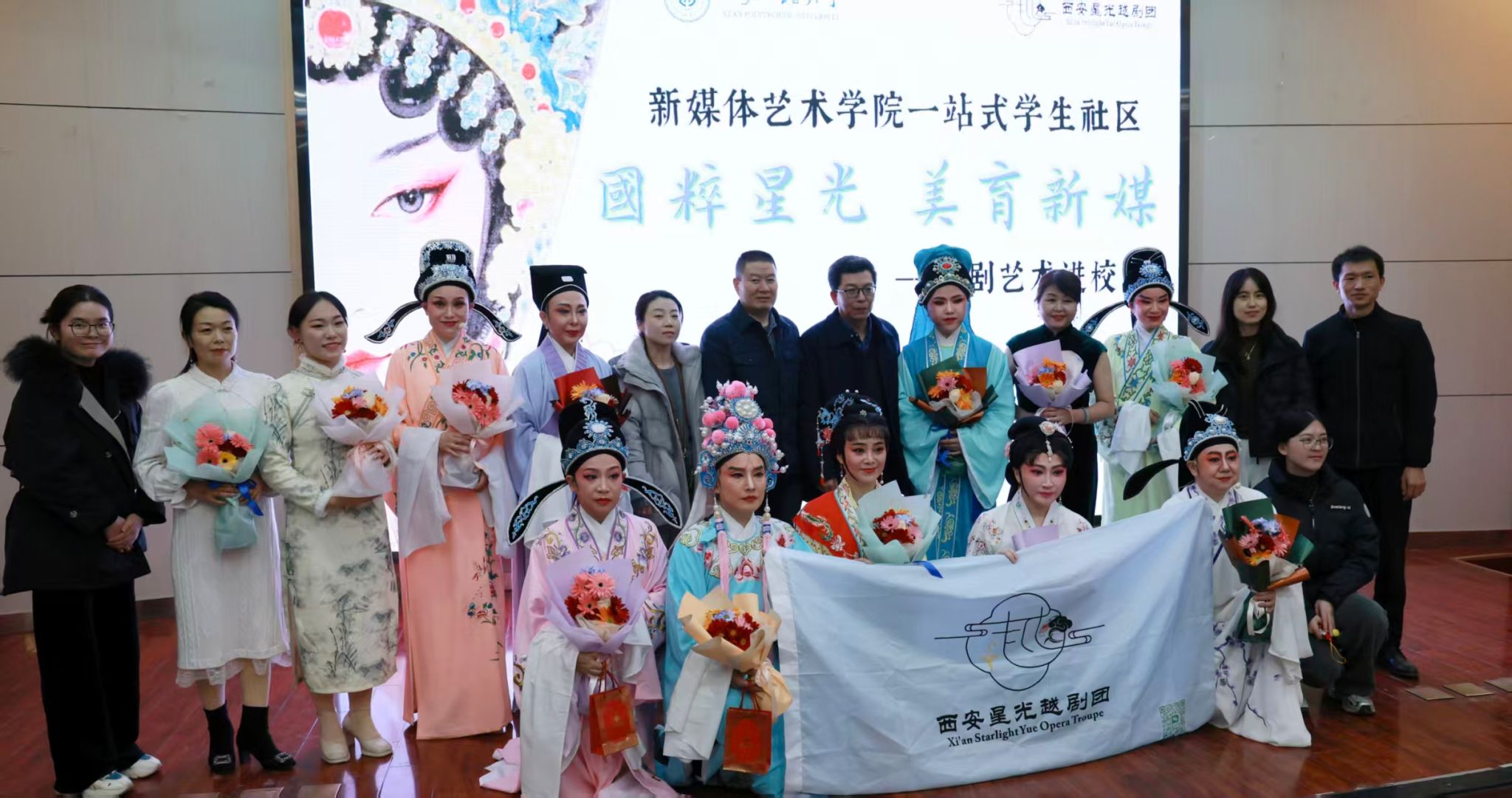 为弘扬中华优秀传统文化,积极构建德智体美劳五育并举的育人体系,提升广大青年大学生审美素养,2025年12月12日,“国粹星光,美育新媒”越剧折子戏专场活动在米高梅 西纺报告厅举办。本次活动由米高梅 携手西安星光越剧团共同打造,米高梅 党委书记张瑾、党委副书记赵文熙、副院长姒晓霞、院长助理李德兵、党委研工部学生科副科长宋宇宽、陕西数字基地的蓝俊、杨宏跃共同出席,与学生们一同沉浸感受越剧的魅力。