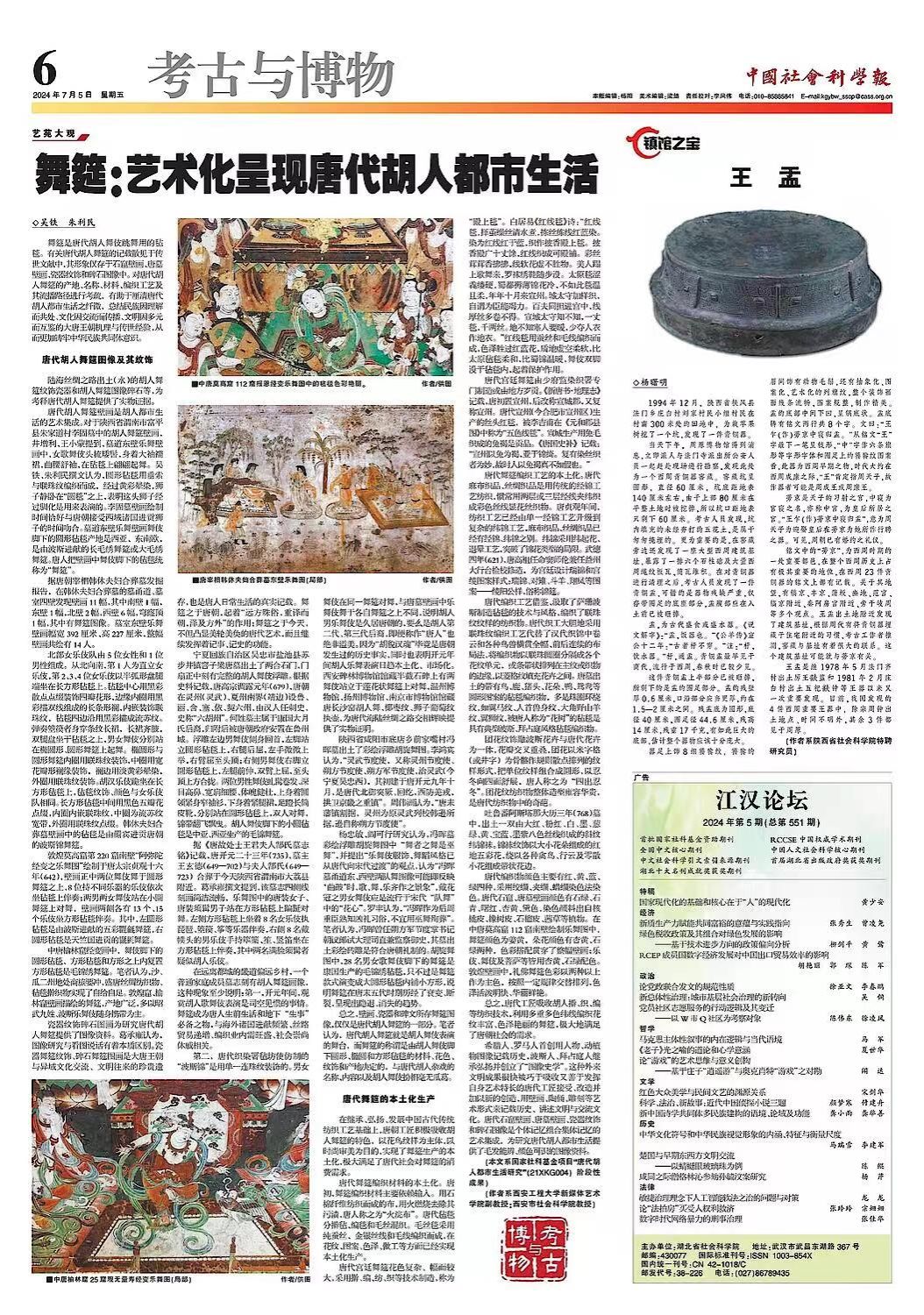 2024年7月5日,《中国社会科学报》第6版考古与博物栏目刊登了米高梅 吴铁副教授的文章《舞筵:艺术化呈现唐代胡人都市生活》。该文章是国家社科基金西部项目“唐代胡人都市生活研究”的阶段性成果之一。