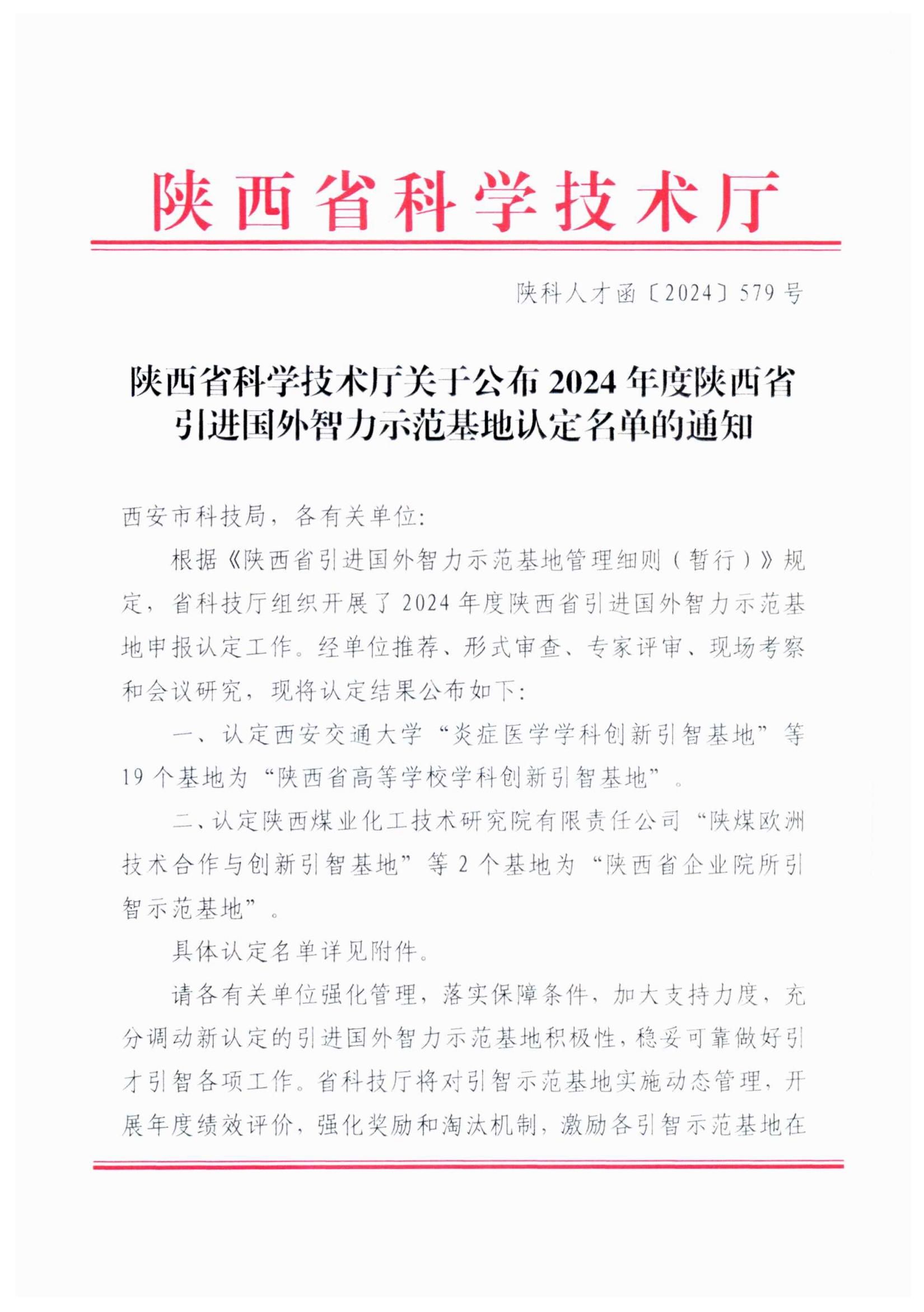 近日,陕西省科技厅公布了2024年度陕西省引进外国智力示范基地认定名单,米高梅米高梅 牵头申报的“影视艺术与数智文化学科创新引智基地”成功获批。