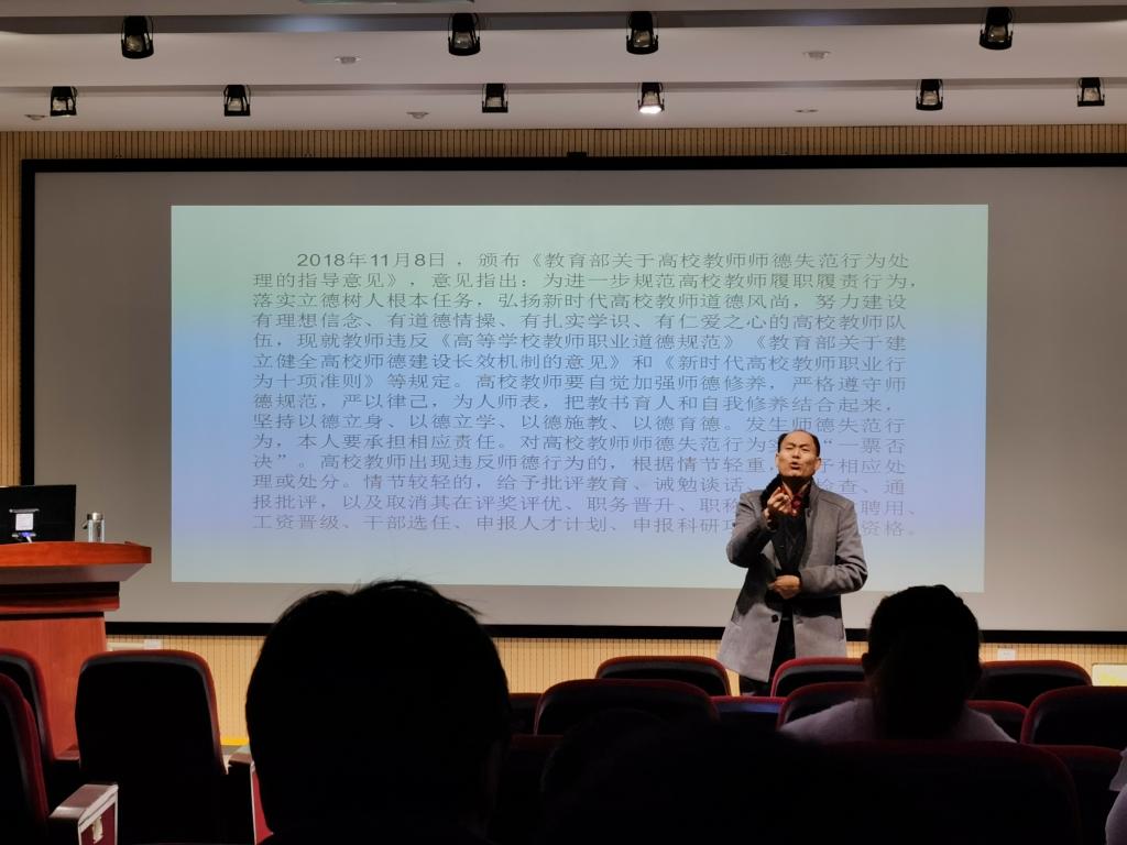 冀德荣教授从2018年颁布的《教育部关于高校教师师德失范行为处理的指导意见》引入本次讲座主题,对习近平总书记关于师德要求的政策文件进行了细致的解读,进而结合丰富的实践案例充分说明了师德建设任重而道远。讲座结合中国古代教育思想、西方教育思想对师德建设的历史重要性和现实重要性做了有深度、有广度、有高度的精彩讲述。